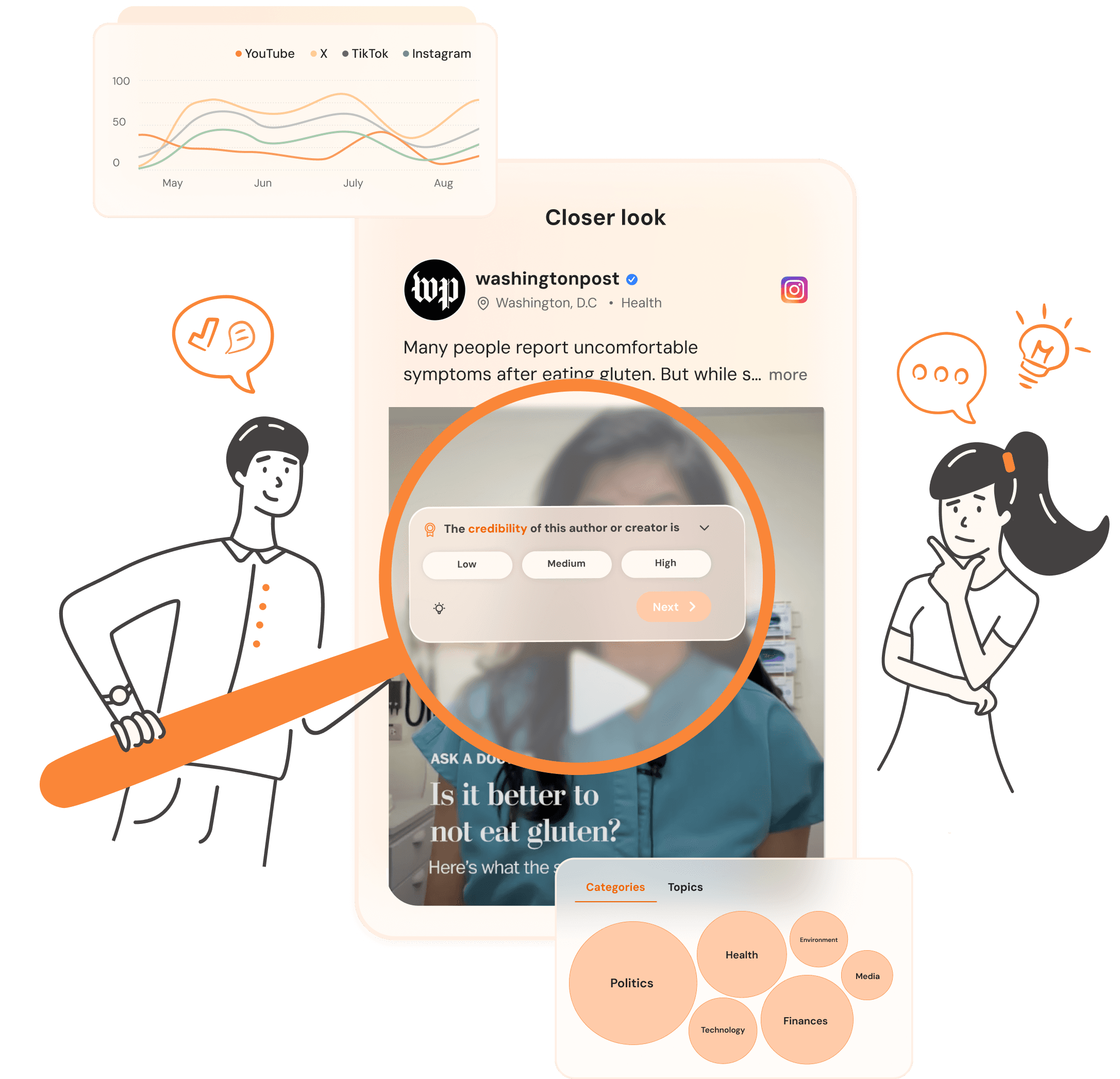 Content in areas such as health, finance and politics, is curated to advance literacy skills and digital well-being.